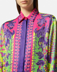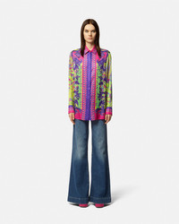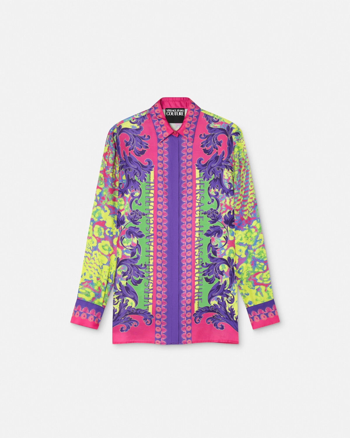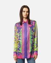 DETAILS This fluid long-sleeved shirt features an Animalier motif, the Institutional logo print at the back, and a concealed button closure. - Animalier print - Institutional logo print - V-Emblem button - Long sleeves - Pointed collar - Concealed button closure - Buttoned cuffs - Outer composition: 100% Viscose Item: E76HAL2P2-ENS448_E609 SIZE & FIT - The model is 5'10" tall and wears size 40 - All sizes fit Italian standards