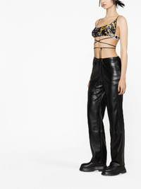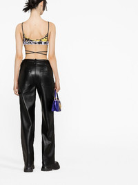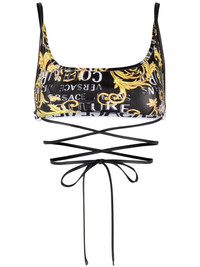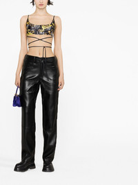 Logo Couture crop top This tie-detailed crop top showcases a signature motif seen throughout Versace Jeans Couture's collections. It's patterned all over with a Logo Couture print - a contrast of gold Baroque-inspired acanthus leaves and monochrome brand lettering. Made in Italy Composition Polyester 80%, Spandex/Elastane 20% SIZE & FIT Model measurements Height 5 ft 10 in(1.77 m) Bust/Chest 31.49 in(80 cm) Hips 35.03 in(89 cm) Waist 23.22 in(59 cm) FittingInformation Designed for a close fit throughout Made from a midweight stretch fabric, this piece offers elasticity and flexibility when worn This piece fits true to size – take your usual size Washing instructions Machine Wash