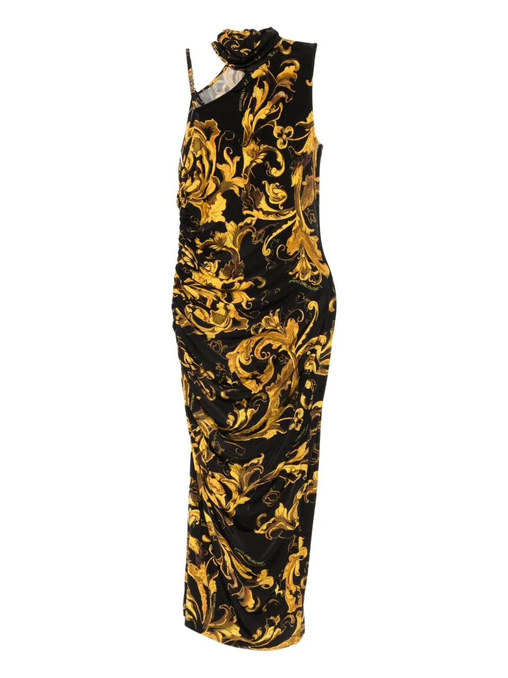 Barocco-print dress Highlights - Black - Barocco print - One-shoulder design - High neck - Ruched detailing - Sleeveless Imported Composition Fabric 100% SIZE & FIT Model measurements Height 5 ft 10 in(1.78 m) Bust/Chest 31.49 in(80 cm) Hips 37 in(94 cm) Waist 23.62 in(60 cm) Washing instructions Read Manufacturer Guidelines
