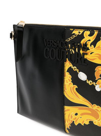 Barocco-print logo-plaque clutch bag Highlights - Black/gold-tone - Signature barocco print - Tonal logo plaque - Top zip fastening - Detachable wrist strap - Detachable shoulder strap - Internal logo plaque - Internal zip-fastening pocket - Logo-print lining - Main compartment Imported Composition Outer: Polyurethane 100% SIZE & FIT Measurement DEPTH 0.39 in(1 cm) HANDLE 5.9 in(15 cm) HEIGHT 9.05 in(23 cm) STRAP 20.86 in(53 cm) WIDTH 12.2 in(31 cm)