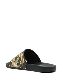 Barocco-print slides Highlights - Black - Moulded footbed - Rubber tread sole - Branded footbed Imported Composition Outer: Polyurethane 100% Lining: Rubber 100% Sole: Rubber 100%