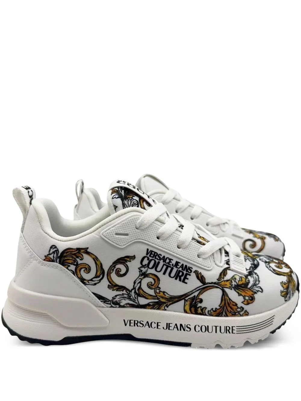 Barocco-print sneakers Highlights - White - Front lace-up fastening - Pull-tab at the heel - Logo patch at the tongue - Ridged rubber sole Imported Composition Outer: Fabric 100%, Polyurethane 100% Sole: Rubber 100% Lining: Fabric 100%, Polyurethane 100%