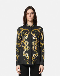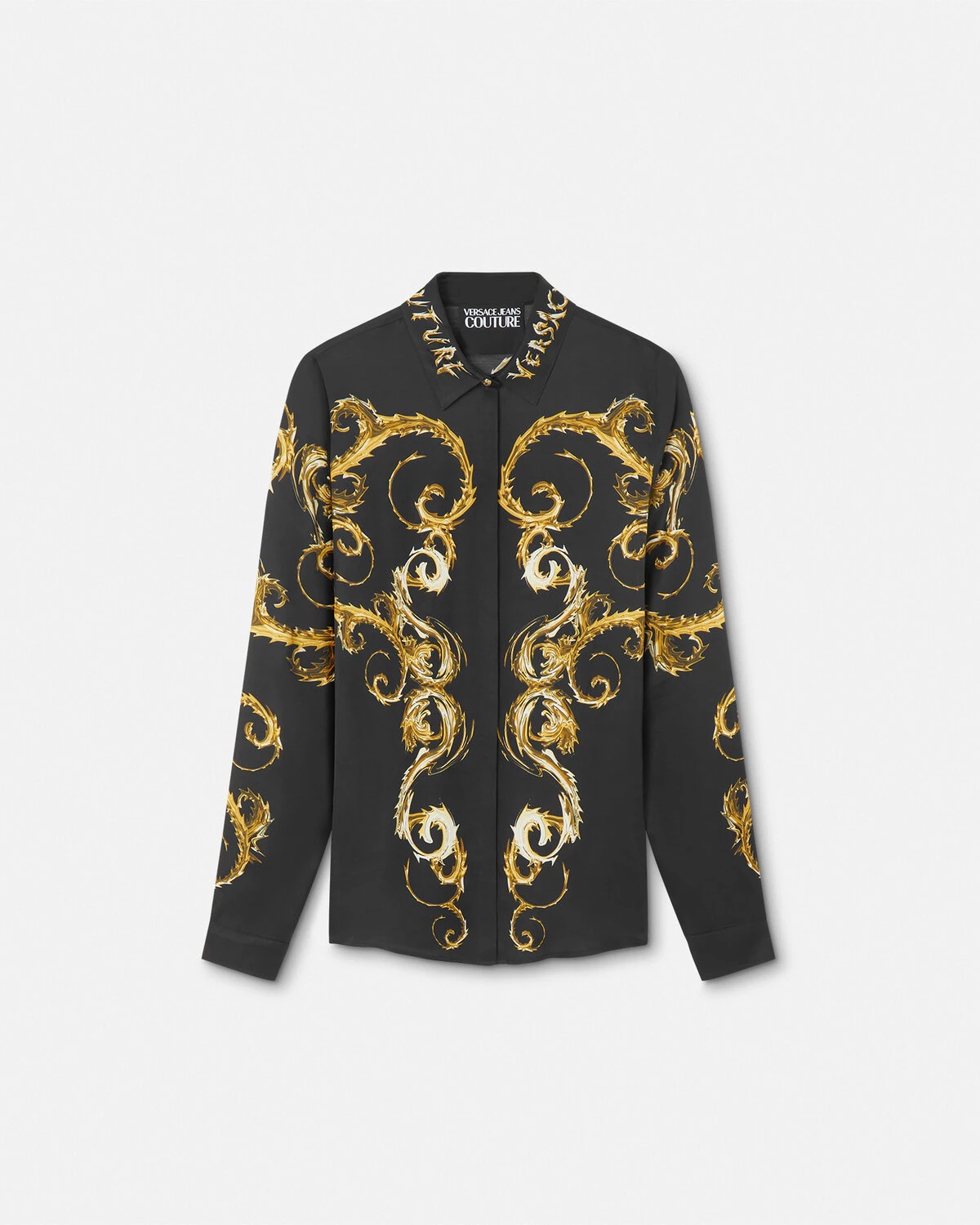 DETAILS This fluid twill longsleeved shirt features an allover Chromo Couture print and the Institutional Logo motif at the pointed collar - Chromo Couture print - Institutional Logo motif - V-Emblem buttons - Long sleeves - Pointed collar - Front button closure - Buttoned cuffs - Outer composition: 100% Viscose Item: E77HAL2P1-ENS540_EG89 SIZE & FIT - The model is 5'9" / 1.81 m tall and wears size 40 IT