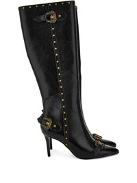 buckle-detail studded knee-high boots Highlights - Black - Leather - Buckle detailing - Stud embellishment - Pointed toe - Stiletto heel Imported Composition Outer: Polyurethane 100% Sole: Polyurethane 100% Lining: Fabric 100%
