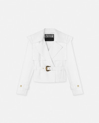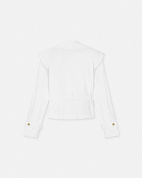 DETAILS A blouson jacket with sharp padded shoulders and an accent Baroque Buckle at the waist - Baroque Buckle hardware - Long sleeves - Front button closure - Adjustable wrist straps - Outer composition: 82% Modal, 18% Polyester - Lining: 52% Viscose, 48% Acetate Item: E78HAS404-EN0433_E003