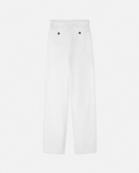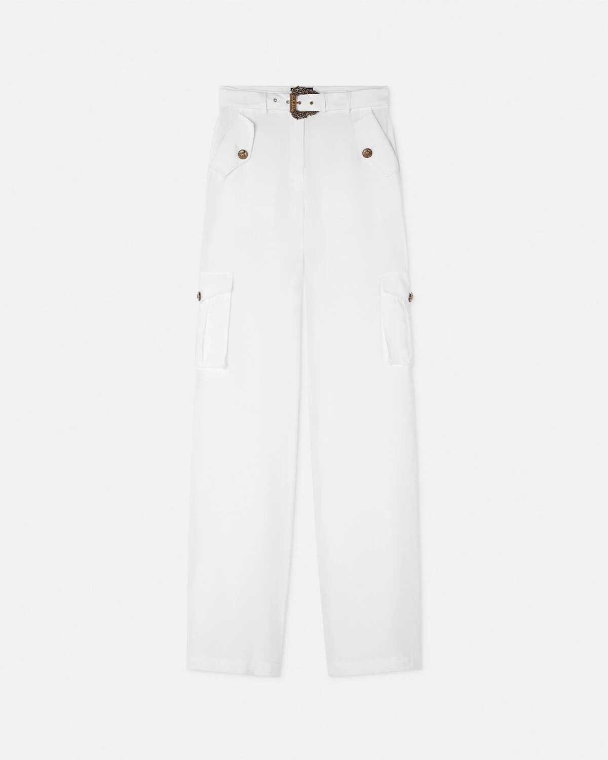 DETAILS Straightfit pants featuring an accent Baroque Buckle at the waist and VEmblem buttons at the cargo pockets - Baroque Buckle hardware - V-Emblem buttons - Side welt and flap pockets - Belt loops - Back flap pockets - Outer composition: 82% Modal, 18% Polyester - Lining: 52% Acetate, 48% Polyester Item: E78HAA109-EN0433_E003