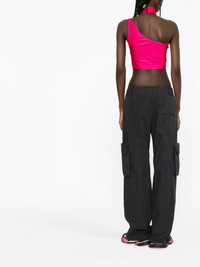 Baroque-buckle cropped top Versace Jeans Couture showcases its bright and playful aesthetic in this cropped top. The Baroque buckle, a key element of the brand's history, makes it an instantly recognizable branded item. Highlights - Fuchsia pink - Asymmetric design - Roll neck - Buckle-embellished shoulder straps - Sleeveless - Straight hem - Cropped Imported Composition Polyamide 79%, Spandex/Elastane 21% SIZE & FIT Model measurements Height 5 ft 10 in(1.79 m) Bust/Chest 31.1 in(79 cm) Hips 35.03 in(89 cm) Waist 24.01 in(61 cm) FittingInformation Designed for a close fit throughout Cropped in length Made from a midweight stretch fabric, this piece offers elasticity and flexibility when worn This piece fits true to size – take your usual size Washing instructions Hand Wash