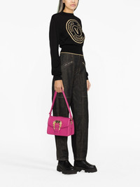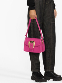 Baroque-buckle crossbody bag Versace Jeans Couture showcases its branding-focused aesthetic with this crossbody bag. Crafted from crimson-pink faux leather, this design is defined by a gold-tone logo plaque and Baroque buckle to the front, making this bag instantly recognisable. Highlights - Crimson pink - Faux leather - Grained texture - Signature baroque buckle - Logo-engraved gold-tone hardware - Padded border - Slip pocket to the rear with magnetic fastening - Adjustable detachable shoulder strap - Front flap closure - Concealed magnetic fastening - Partitioned compartment - Top zip fastening - Internal zip-fastening pocket - Internal logo plaque - Logo-jacquard lining Imported Composition Lining: Polyester 100% Outer: Polyester 100%, Polyurethane Resin 100% SIZE & FIT Model measurements Height 5 ft 10 in(1.77 m) Bust/Chest 32.67 in(83 cm) Hips 35.43 in(90 cm) Waist 23.62 in(60 cm) Measurement DEPTH 3.54 in(9 cm) HANDLE 11.81 in(30 cm) HEIGHT 5.51 in(14 cm) STRAP 21.65 in(55 cm) WIDTH 9.44 in(24 cm)