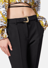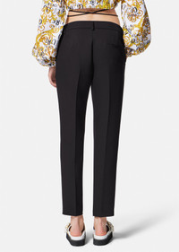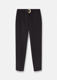 These stretch tapered pants are accented by an adjustable Baroque buckle at the front. DETAILS & CARE - Baroque buckle - Belt loops - Side pockets - Back welt pocket - Outer composition: 93% Polyester, 7% Elastane - Lining: 100% Polyester - Hand wash gently using mild detergent - Do not bleach - Do not tumble dry - Drip flat drying in the shade - Cool iron with damp cloth on top - Delicate dry clean - Professional wet clean (very mild process) - Protect decorations during washing SIZE & FIT - The model is 5'8" ft tall and wears size 40 IT - All sizes fit Italian standards