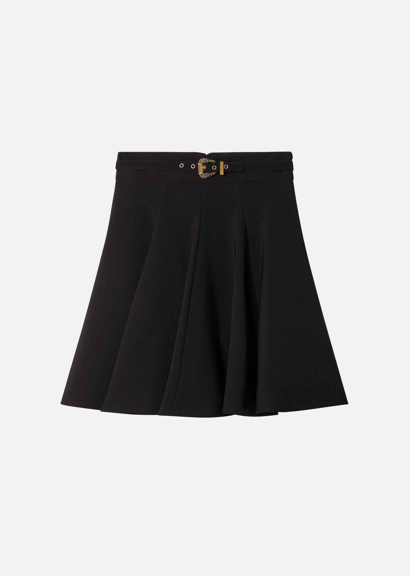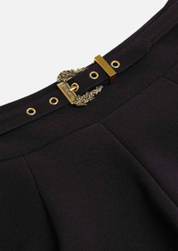Truly channeling Versace Jeans Couture's feeling of rebellious youth, this pleated skirt features a decorative belt detail with the Baroque Couture I buckle. DETAILS & CARE - Baroque Couture I buckle - Pleated style - Rear zip fastening - Outer fabric: 93% Polyester 7% Elastane - Cool iron - Do not dry clean - Do not bleach - Do not tumble dry - Do not wash in water exceeding 30°C - Made in Italy SIZE & FIT - All sizes fit Italian standards