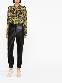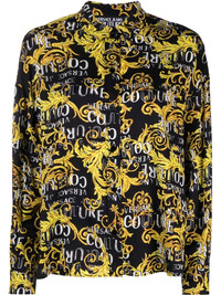 baroque logo-print shirt Pairing the brand's signature baroque-pattern print with an all-over logo print, this shirt from Versace Jeans Couture has a classic yet contemporary feel and reflects the brand's penchant for bold prints. Imported Composition Viscose 100% SIZE & FIT Model measurements Height 5 ft 10 in(1.78 m) Bust/Chest 29.92 in(76 cm) Hips 34.64 in(88 cm) Waist 23.62 in(60 cm) FittingInformation This piece fits true to size. We recommend you get your regular size Cut for a loose fit Made with a mid-weight non-stretch fabric Washing instructions Dry Clean Only