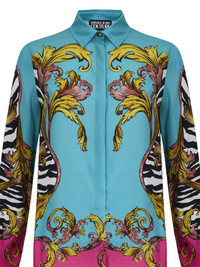 baroque-print button-up shirt Highlights - Blue - Baroque-inspired design - Contrasting zebra stripes - Vibrant pink detailing - Button closures - Long sleeves Imported Composition Viscose 100% Washing instructions Read Manufacturer Guidelines
