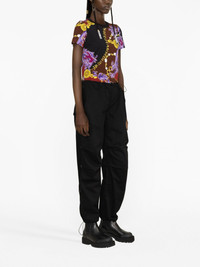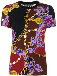 baroque-print cotton T-shirt Highlights - Rose red/multicolour - Stretch-cotton - Baroque-pattern print - All-over logo print - Round neck - Short sleeves - Straight hem Imported Composition Cotton 87%, Elastane 13% SIZE & FIT Model measurements Height 5 ft 10 in(1.79 m) Bust/Chest 31.1 in(79 cm) Hips 35.03 in(89 cm) Waist 24.01 in(61 cm) FittingInformation Designed for a slim fit that sits just away from the body offering a close yet comfortable fit Made from a midweight stretch fabric, this piece offers elasticity and flexibility when worn This piece fits true to size – take your usual size Washing instructions Machine Wash