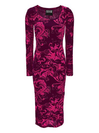baroque-print long-sleeve midi dress Highlights - Purple - Baroque print - Long sleeves - Round neck - Midi length Imported Composition Fabric 100%