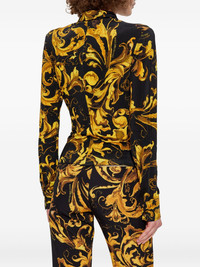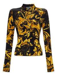 baroque-print long-sleeve shirt Highlights - Black - Signature baroque print - Long sleeves - Button fastening - Collared neck - Gold-tone buttons Imported Composition Viscose 96%, Elastane 4% Washing instructions Read Manufacturer Guidelines