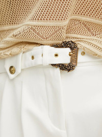 belted pleated trousers Highlights - Off-white - Pleated front - High waist - Belted waist - Button fastening Imported Composition Fabric 100% Washing instructions Read Manufacturer Guidelines