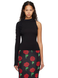 Stretch cotton jersey T-shirt. · Single-shoulder construction · Self-tie fastening at rib knit crewneck · Lace-up detailing at sleeve Supplier color: Black 94% cotton, 6% elastane. Made in Italy 231202F110002