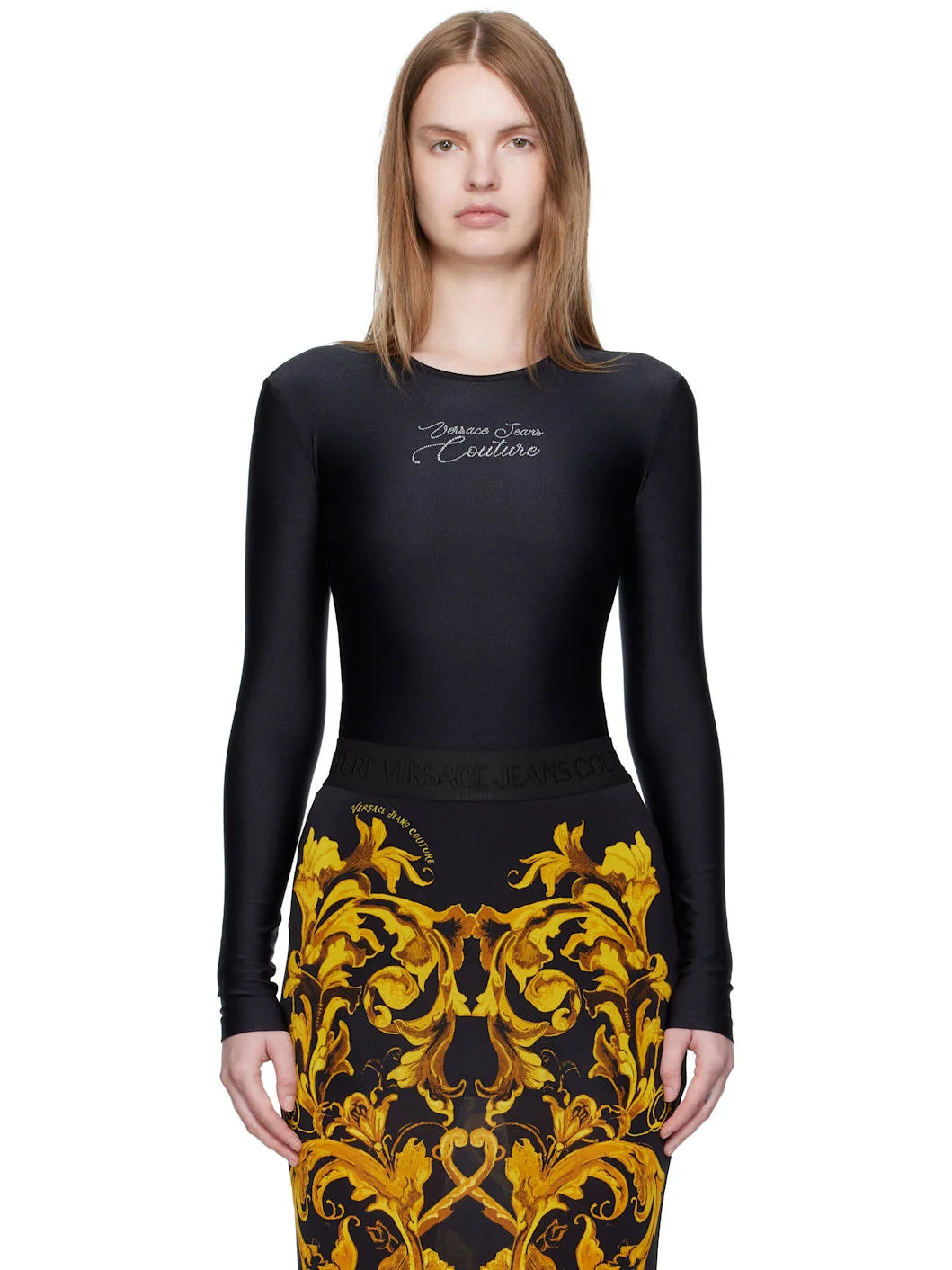 Stretch nylon jersey bodysuit. · Crewneck · Crystal-cut logo at front · Adjustable press-stud fastening at bottom Supplier color: Black 80% polyamide, 20% elastane. Made in Albania 252202F358000