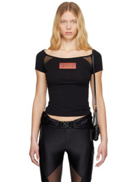 Stretch cotton jersey and sheer stretch nylon mesh T-shirt. · Paneled construction · Boat neck · Logo patch at chest Supplier color: Black Body 1: 82% polyamide, 18% elastane. Body 2: 94% cotton, 6% elastane. Made in Italy 251202F110012