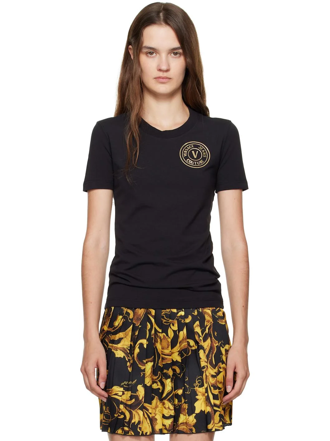 Stretch cotton jersey T-shirt. · Rib-knit crewneck · Logo stamp at chest Supplier color: Black/Gold 95% cotton, 5% elastane. Made in Egypt 252202F110014