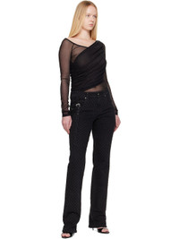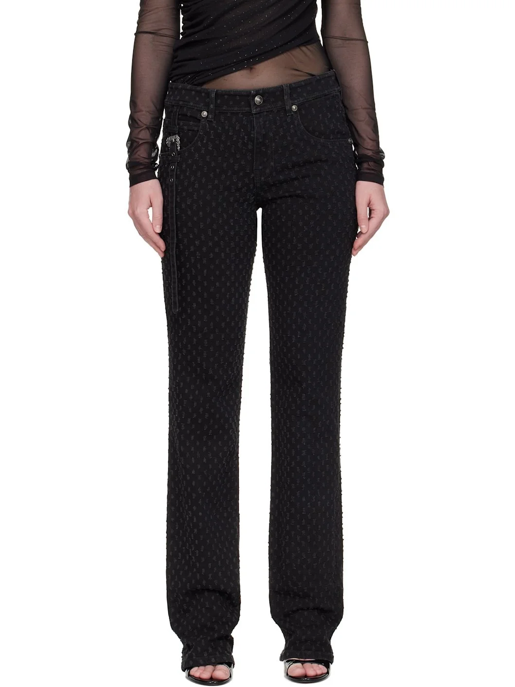 Non-stretch cotton-blend twill jeans. · Distressed pattern throughout · Straight leg · Mid-rise · Belt loops · Pin-buckle strap with logo hardware at waist · Zip fly · Five-pocket styling · Leather logo patch at back waistband Supplier color: Black 99% cotton, 1% elastane. Made in Italy 251202F069009