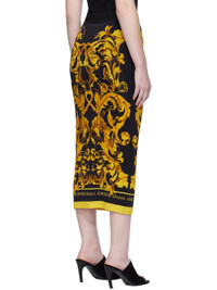 Stretch viscose jersey midi skirt. · Barocco pattern and logos printed throughout · Jacquard logo at elasticized waistband · Partially lined Supplier color: Black/Gold Body: 90% viscose, 10% elastane. Lining: 100% polyamide. Made in Albania 252202F086000