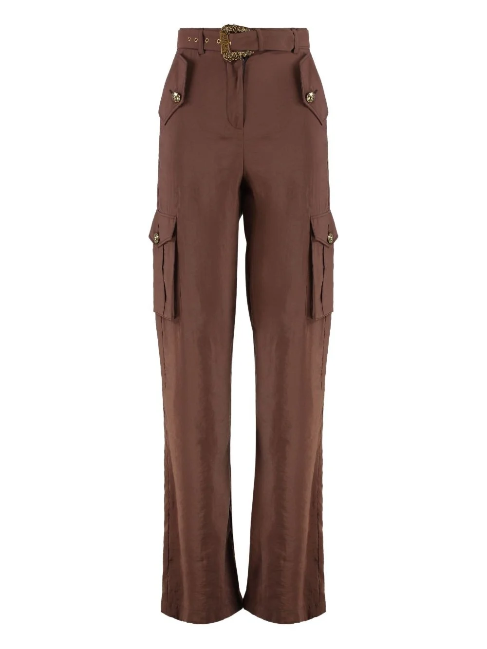 belted cargo trousers Highlights - Brown - Cargo pockets - Belted waist - Button fastening - Straight leg - High waist Imported Composition Outer: Modal 82%, Polyester 18% Lining: Polyester 100%, Acetate 52% SIZE & FIT FittingInformation Designed with a wide-leg cut, these trousers allow for a close fit at the waist and offer a loose and roomy fit over the leg The belt offers adjustability for fitted preferences Made from a lightweight non-stretch fabric Washing instructions Read Manufacturer Guidelines