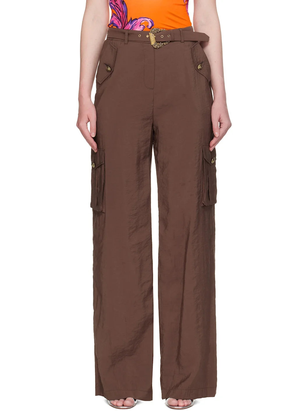 Brown Baroque Buckle Cargo Pants