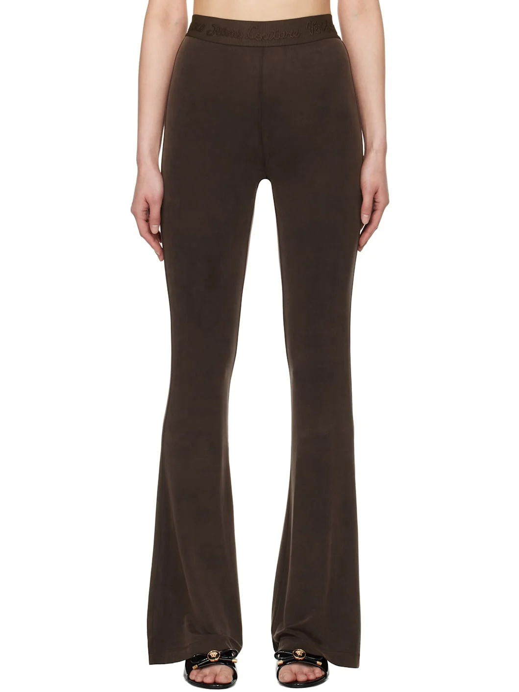 Flared stretch cupro peached jersey leggings. Logo-embroidered elasticized waistband. Supplier color: Cocoa 95% cupro, 5% elastane. Made in Albania 251202F086003