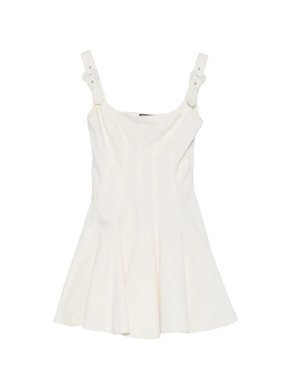 buckle strap dress Highlights - Cream - Pleated skirt - Buckle-embellished straps - Square neck - Sleeveless - A-line Imported Composition Outer: Cotton 98%, Spandex/Elastane 2% Lining: Polyester 100% Washing instructions Machine Wash