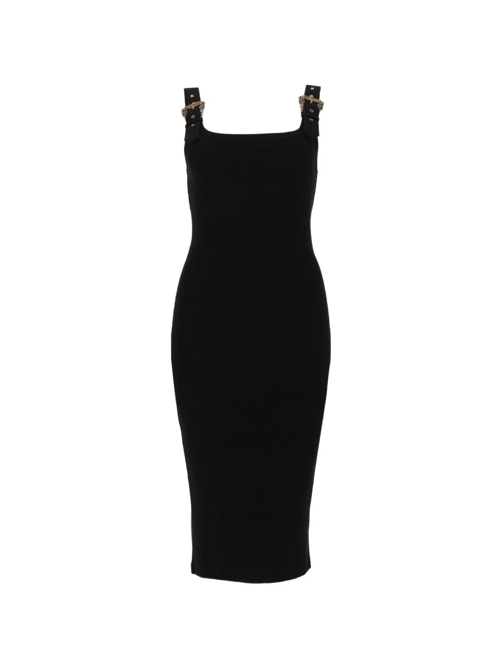buckle strap dress Highlights - Black - Ribbed knit - Buckle detailing - Shoulder straps - Sleeveless - Midi length Imported Composition Cotton 98%, Spandex/Elastane 2%