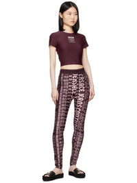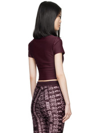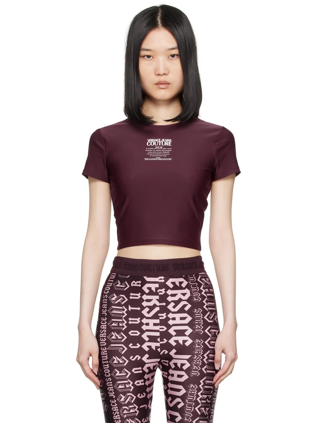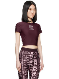 Stretch nylon jersey T-shirt. · Crewneck · Logo and text printed at front · Cropped hem Supplier color: Plum 80% polyamide, 20% elastane. Made in Albania 242202F110007