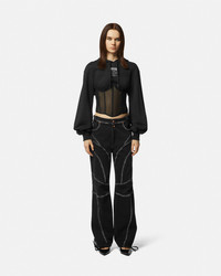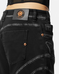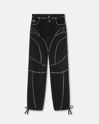 DETAILS These cargo mid-rise jeans feature a Piece Number logo at the front and an Institutional logo patch at the back. The five-pocket design is detailed with bleached top-stitched outlines and elastic drawstring cuffs. - Piece Number logo - Institutional logo patch - V-Emblem hardware - Snap-button closure - Front button and zip closure - Belt loops - Elastic drawstring cuffs - Five-pocket design - Outer composition: 99% Cotton, 1% Elastane - Lining: 65% Polyester, 35% Cotton Item: E76HAB520-EDW060D24_E909 SIZE & FIT - The model is 5'10" tall and wears size 26 - All sizes fit Italian standards