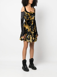 Chain Couture long-sleeved corset dress Highlights - Black/yellow - Velvet finish - Corset style - All-over logo print - Chain-link print - Asymmetric neck - Rear zip fastening - Wide shoulder straps - Long sleeves - Fitted waistline - A-line skirt - Straight hem - Thigh-length Imported Composition Outer: Polyester 96%, Spandex/Elastane 4% Lining: Acetate 52%, Polyester 48% SIZE & FIT Model measurements Height 5 ft 10 in(1.78 m) Bust/Chest 33.07 in(84 cm) Hips 36.61 in(93 cm) Waist 24.8 in(63 cm) FittingInformation Designed for a close fit at the chest and waist with a loose fit at the hip The internal bodice offers support and shape Made from a midweight fabric This piece fits true to size – take your usual size