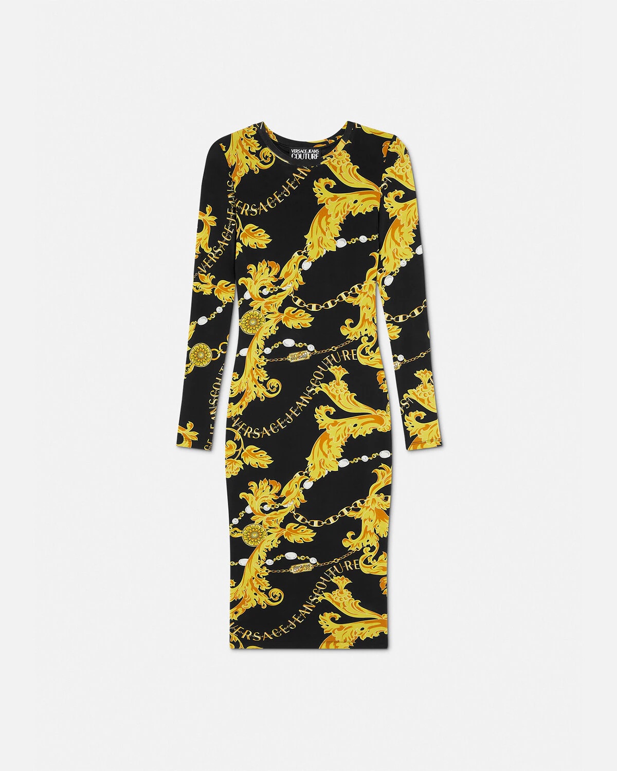 A slip-on stretch-jersey midi dress featuring an all-over Chain Couture print with long sleeves. DETAILS & CARE - Chain Couture print - Long sleeves - Crewneck - Mesh lining - Outer composition: 90% Viscose, 10% Elastane - Lining: 100% Nylon - Hand wash gently using mild detergent - Do not bleach - Do not tumble dry - Cool iron with damp cloth on top - Do not dry clean - Wash inside out - Iron reverse side only SIZE & FIT - The model is 5'8" tall and wears size 40 - All sizes fit Italian standards