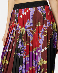 A fluid pleated midi skirt featuring an all-over Chain Couture print with a contrasting jacquard logo waistband. DETAILS & CARE - Chain Couture print - Logo - Elasticized waistband - Outer composition: 100% Polyester - Do not wash - Do not bleach - Do not tumble dry - Cool iron with damp cloth on top - Delicate dry clean - Do not professional wet clean - Do not iron pleated parts SIZE & FIT - The model is 5'8" tall and wears size 40 - All sizes fit Italian standards