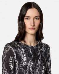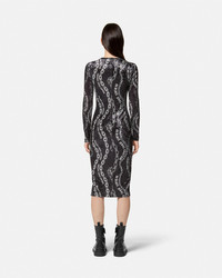 DETAILS A stretch velvet midi dress with an allover Chain Couture print - Chain Couture print - Slip-on - Long sleeves - Crewneck - Mesh lining - Outer composition: 95% Polyester, 5% Elastane Item: E77HAO9B0-EJS367_E899 SIZE & FIT - The model is 5'10" / 1.81 m tall and wears size 40 IT