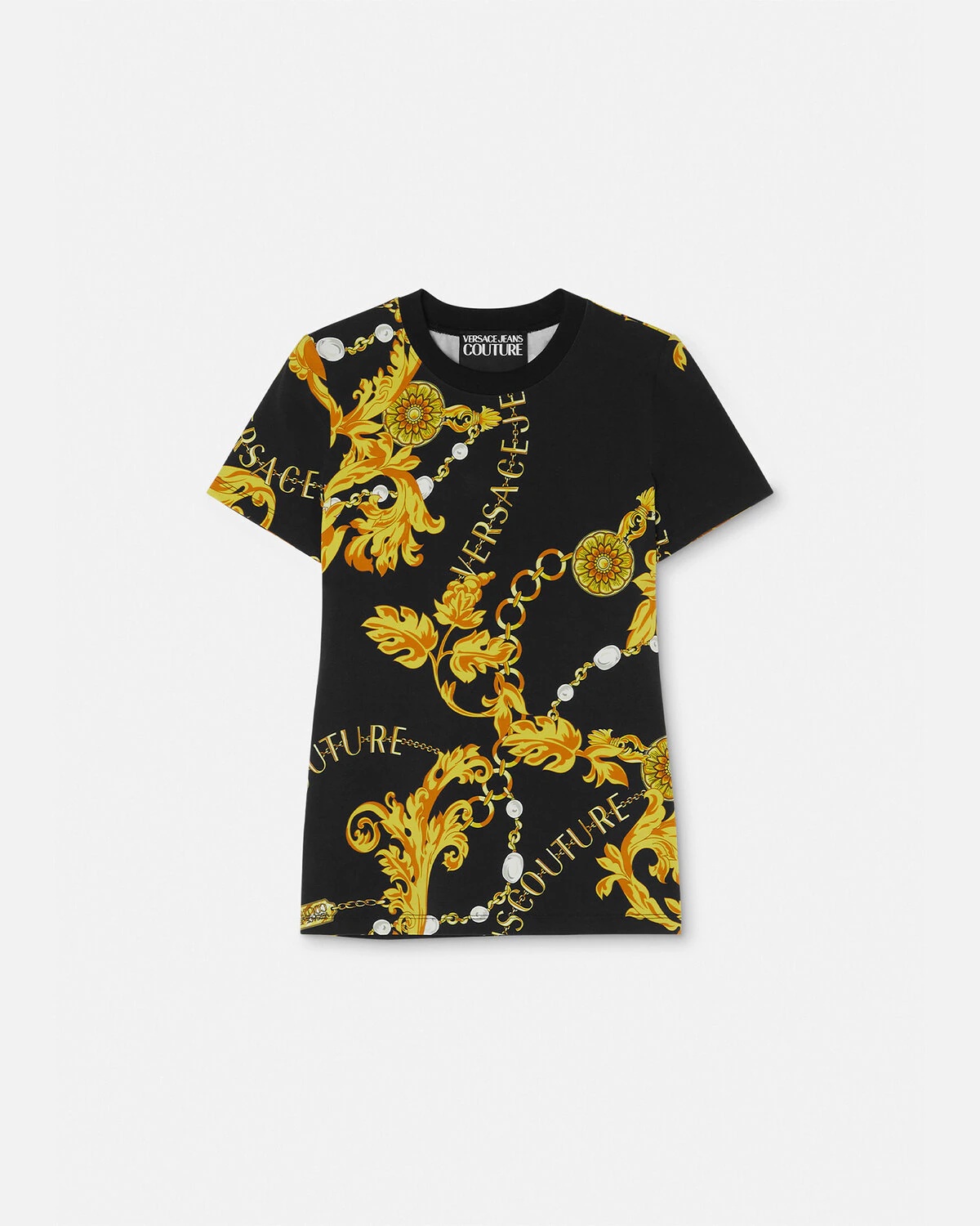 A short-sleeved crewneck T-Shirt featuring the Chain Couture print all-over. DETAILS & CARE - Chain Couture print - Short sleeves - Crewneck - Outer composition 1: 87% Cotton, 13% Elastane - Outer composition 2: 98% Cotton, 2% Elastane - Machine wash cold (delicate) - Do not bleach - Do not tumble dry - Cool iron with damp cloth on top - Delicate dry clean - Wash inside out SIZE & FIT - The model is 5'8" tall and wears size S - All sizes fit Italian standards