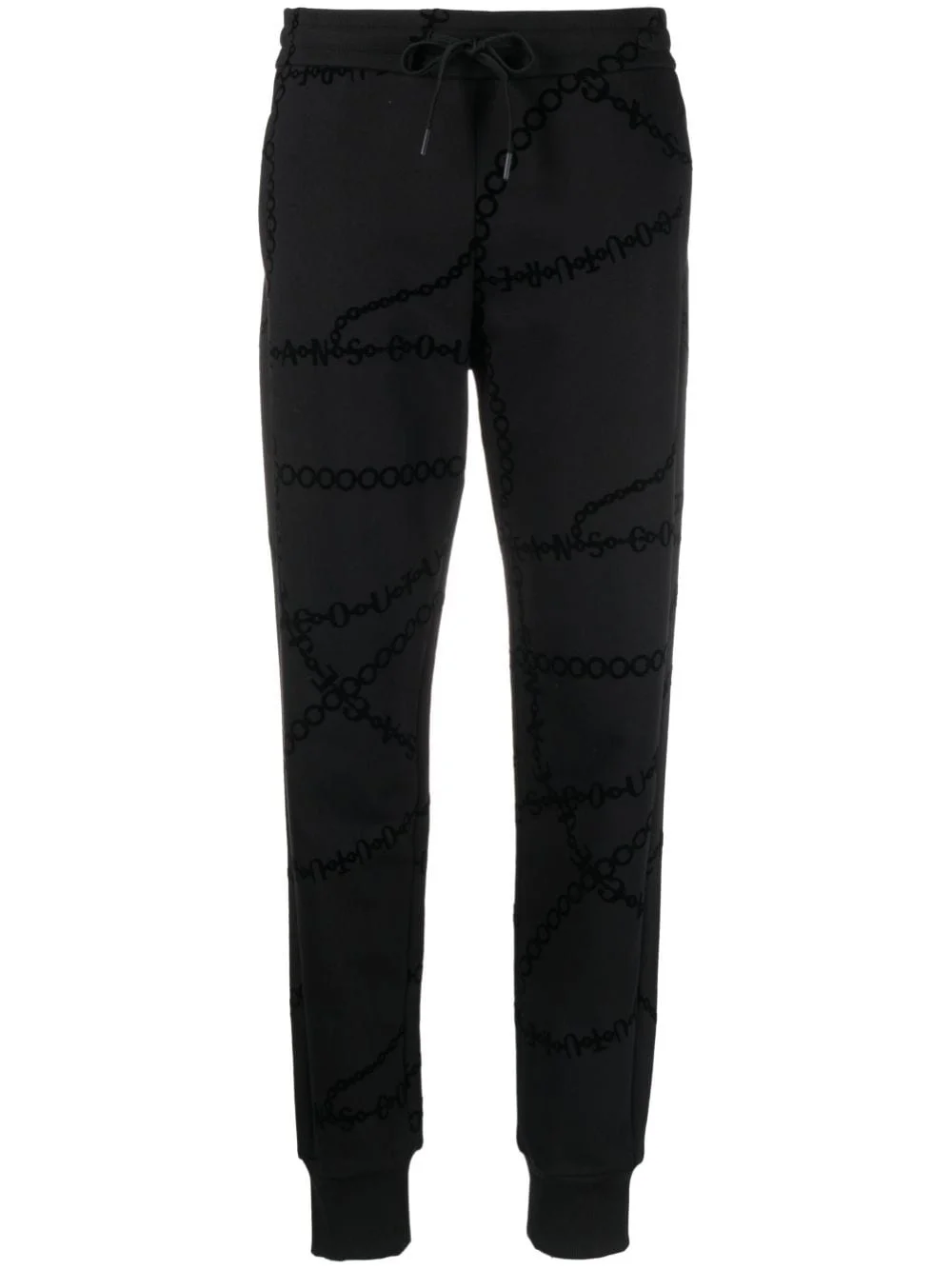 chain-print cotton track pants A subtle touch of branding defines these track pants from Versace Jeans Couture. They're decorated with the brand's signature chain-link print in a tonal design. Highlights - Black - Cotton - Chain-link print - Tapered leg - Elasticated drawstring waistband - Two side slash pockets Made in Italy Composition Outer: Cotton 100%, Polyamide 100% Lining: Cotton 100% SIZE & FIT Model measurements Height 5 ft 10 in(1.78 m) Bust/Chest 30.7 in(78 cm) Hips 34.64 in(88 cm) Waist 23.22 in(59 cm) FittingInformation Designed for a relaxed tapered cut, these trousers allow for a close fit at the waist and offer a loose fit at the thighs, with a closer fit toward the ankles The elasticated waist allows for a comfortable fit Made from a midweight non-stretch fabric, this piece offers minimal elasticity when worn This piece fits true to size – take your usual size