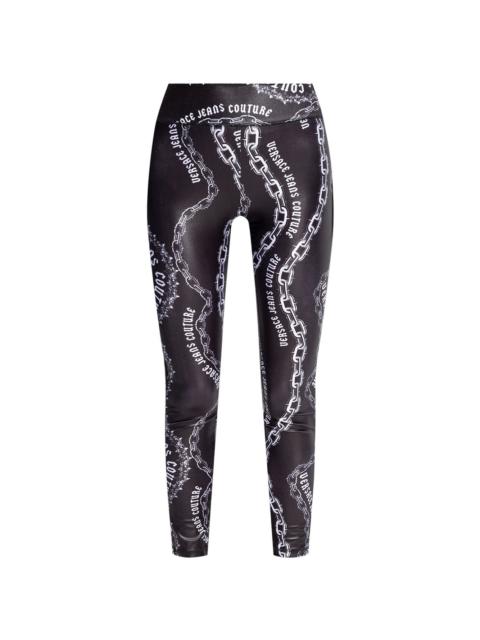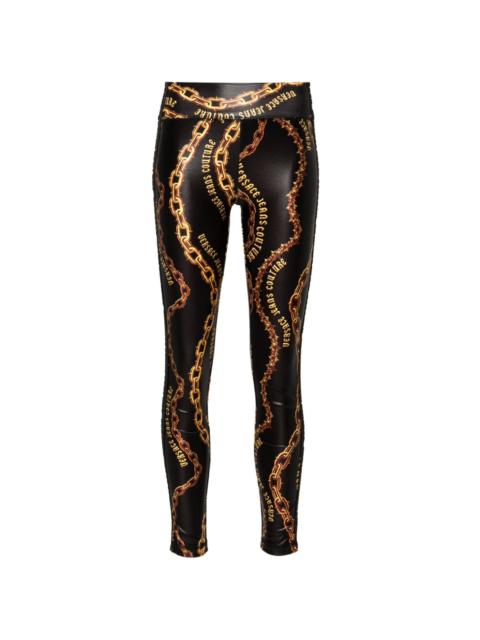 chain-print leggings Highlights - Black/gold-tone - Stretch-design - Chain-link print - All-over logo print - High waist - Logo grosgrain ribbon trim - Unlined Made in Italy Composition Polyamide 80%, Elastane 20% SIZE & FIT Model measurements Height 5 ft 11 in(1.8 m) Bust/Chest 31.49 in(80 cm) Hips 36.61 in(93 cm) Waist 24.4 in(62 cm) FittingInformation Designed for a close fit throughout The elasticated waist allows for a comfortable fit Made from a midweight stretch fabric, this piece offers elasticity and flexibility when worn This piece fits true to size – take your usual size