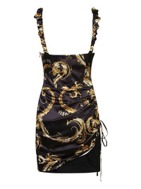 Chromo Couture mini dress Highlights - Black/gold-tone - Satin weave - Concealed side zip fastening - Signature chrome couture print - Square neck - Sleeveless - Ruched detailing - Gold-tone logo plaque - Straight hem - Thigh-length Made in Italy Composition Fabric 100%