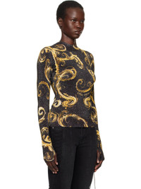 Knit stretch viscose-blend sweater. Graphic and logo pattern printed throughout. · Rib-knit mock neck, hem, and cuffs · Thumbhole at cuffs Supplier color: Black/Gold