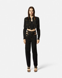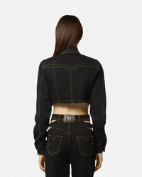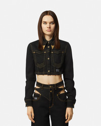 DETAILS This cropped denim jacket is crafted from stretch cotton and features a frayed hem, buttoned closure, and Western-style collar tips. - V-Emblem buttons - Piece Number logo label - Western-style collar tips - Pointed collar - Long sleeves - Front pockets - Snap-button closure - Outer composition: 99% Cotton, 1% Elastane Item: E76HAL253-EDW060L54_E909 SIZE & FIT - The model is 5'10" tall and wears size 40 - All sizes fit Italian standards