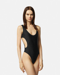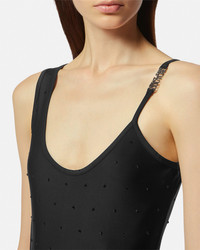 DETAILS A sleeveless bodysuit accented by crystal embellishments. The asymmetric design features the Institutional logo hardware at the left shoulder strap and cutout details. - Institutional logo hardware - Crystal embellishments - Sleeveless - Round neckline - Hook-and-eye closure - Outer composition: 80% Polyester, 20% Elastane Item: E76HAME05-ECJXXE_E899 SIZE & FIT - The model is 5'10" tall and wears size S - All sizes fit Italian standards