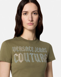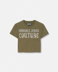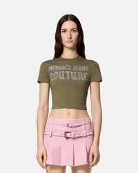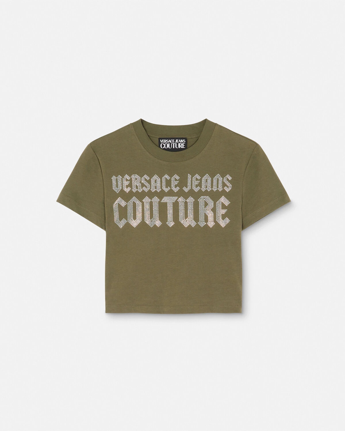 DETAILS A cropped cottonjersey Tshirt featuring a crystalembellished gothic logo motif - Logo motif - Crystal embellishments - Short sleeves - Crewneck - Outer composition: 95% Cotton, 5% Elastane Item: E77HAHL00-ECJ02L_E151 SIZE & FIT - The model is 5'9" / 1.81 m tall and wears size S IT