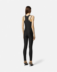 DETAILS A stretch, slim fit halterneck jumpsuit accented by crystal embellishments throughout and the Institutional logo hardware on the left shoulder strap. - Institutional logo hardware - Crystal embellishments - Sleeveless - Shoulder straps - Halterneck - Back zip closure - Outer composition: 80% Polyester, 20% Elastane Item: E76HANE05-ECJXXE_E899 SIZE & FIT - The model is 5'11" tall and wears size S - All sizes fit Italian standards