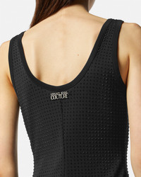 DETAILS A slim-fitting jersey midi dress featuring all-over crystal embellishments and the Institutional logo hardware at the back. - Institutional logo hardware - Crystal embellishments - Sleeveless - Scoop neckline - Outer composition 1: 100% Polyester - Outer composition 2: 92% Viscose, 8% Elastane Item: E76HAO946-EJ0124_E899 SIZE & FIT - The model is 5'10" tall and wears size 40 - All sizes fit Italian standards