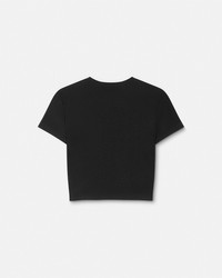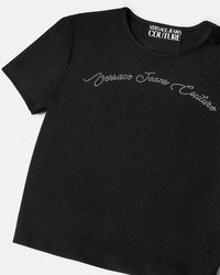 DETAILS A cropped shortsleeved Tshirt in shiny lycra featuring a crystalembellished Signature Institutional Logo motif - Signature Institutional Logo motif - Crystal embellishments - Short sleeves - Crewneck - Outer composition: 80% Nylon, 20% Elastane Item: E79HAH6A2-EN0008_E899