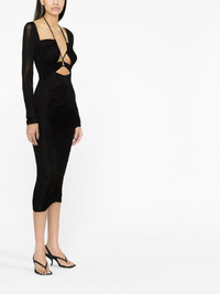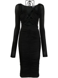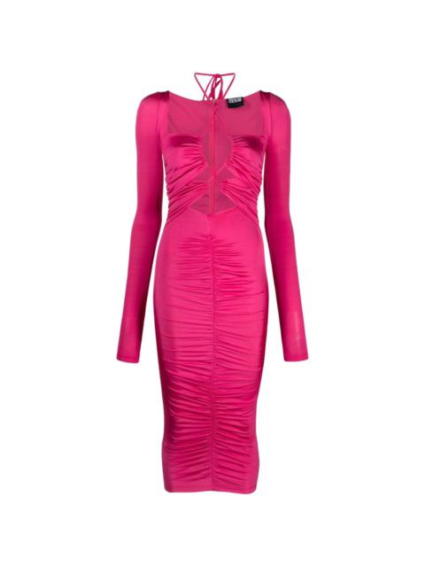 cut-out lace-up midi dress This mid-length dress from Versace Jeans Couture is enhanced by cut-out detailing to the front of the design that is fastened with a lace-up construction. Highlights - Black - Stretch-design - Cut-out detailing - Square neck - Long sleeves - Front lace-up fastening - Below-knee length Imported Composition Outer: Acetate 94%, Elastane 6% Lining: Polyamide 100% SIZE & FIT Model measurements Height 5 ft 10 in(1.77 m) Bust/Chest 32.67 in(83 cm) Hips 35.43 in(90 cm) Waist 23.62 in(60 cm) FittingInformation Designed for a close fit throughout The adjustable drawstring means that you can adjust this piece’s fit to suit your comfort and preference Made from a midweight stretch fabric, this piece offers elasticity and flexibility when worn This piece fits true to size – take your usual size Washing instructions Hand Wash