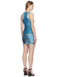 Stretch polyester jersey dress. Trompe-l'oeil denim effect printed throughout. · Scoop neck · Fixed shoulder straps and spaghetti straps · Logo hardware at spaghetti strap · Racerback Supplier color: Bonnie light blue 80% polyester, 20% elastane. Made in Albania 241202F052012